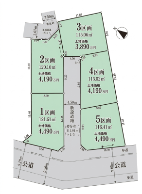 | 現況/引渡し | 更地/相談 | 接道状況 | 接道: 北西 公道 道路幅: 4.5m |